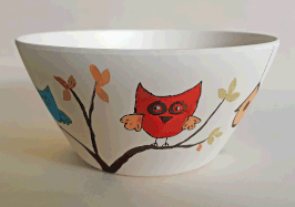Die Bambus Schüssel eignet sich hervorragend für kleine Snacks wie Pommes Chips oder Kekse. Aber auch als Müslischale oder für Kinder ist sie sehr geeignet. Die Bambus Schüssel ist nämlich sehr leicht und stabil. Auch bei einem Fall auf einen harten Untergrund zerbricht die Bambus Schüssel nicht. Man kann sie auch als Fressnapf für das geliebte Haustier (Katze oder kleinen Hund) gut gebrauchen. Diese Schüssel habe ich mit Pinsel bemalt.